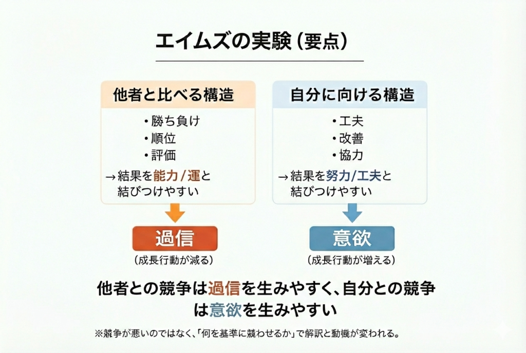 同じ課題でも、何を基準に競わせるかで、結果の受け取り方が変わるという点です。