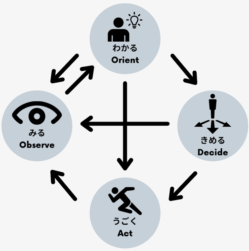 OODAループの強みは、考えてから動くではなく、動きながらその状況に合わせて決断できることです。